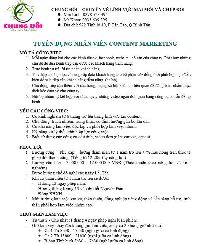 MÔ TẢ CÔNG VIỆC 1. Tiếp nhận khách hàng từ sale, tìm giải quyết các vấn đề mà khách hàng gặp phải. 2. Tư vấn các giải pháp tốt nhất để xử lý vấn đề khách hàng.